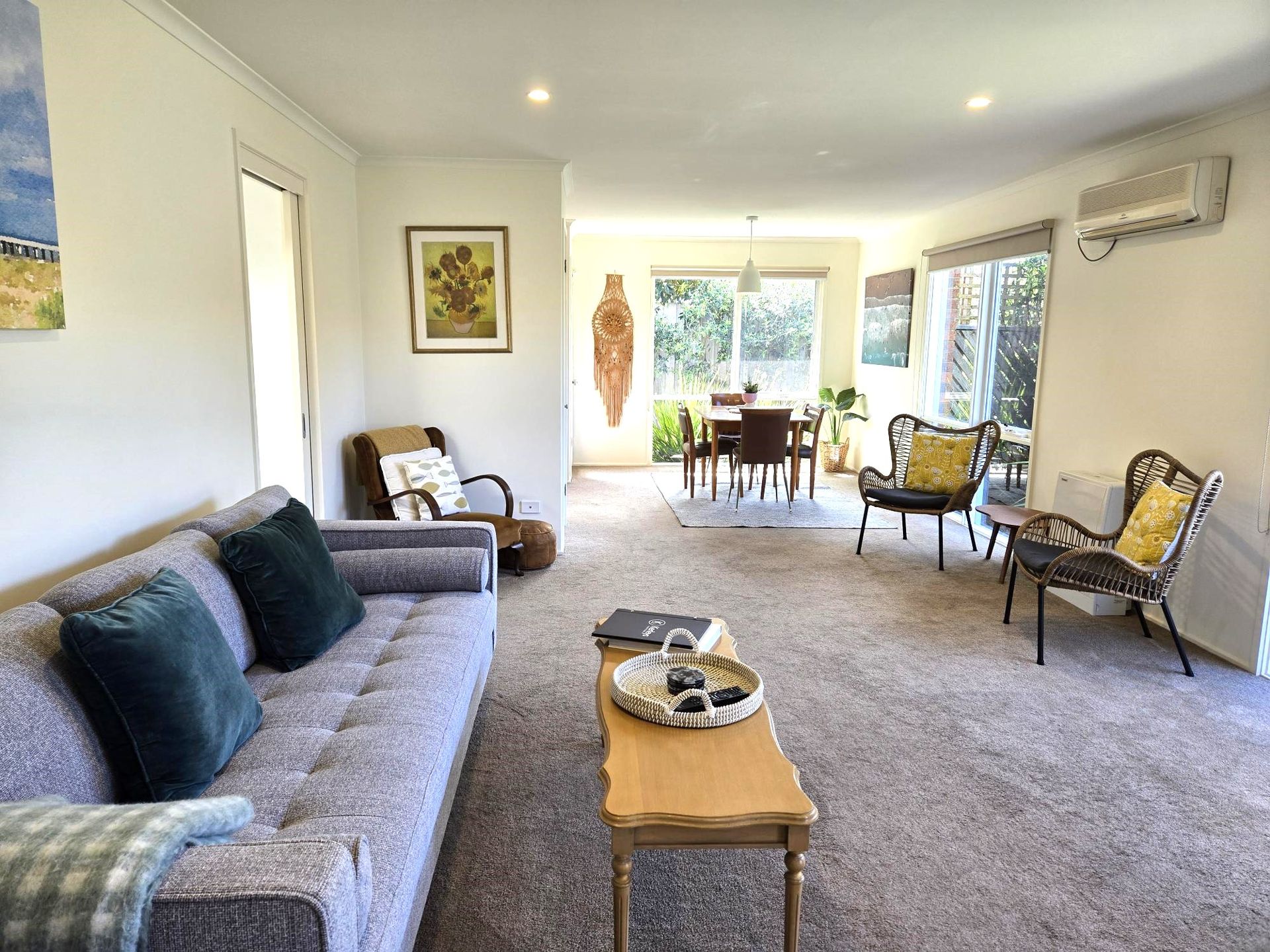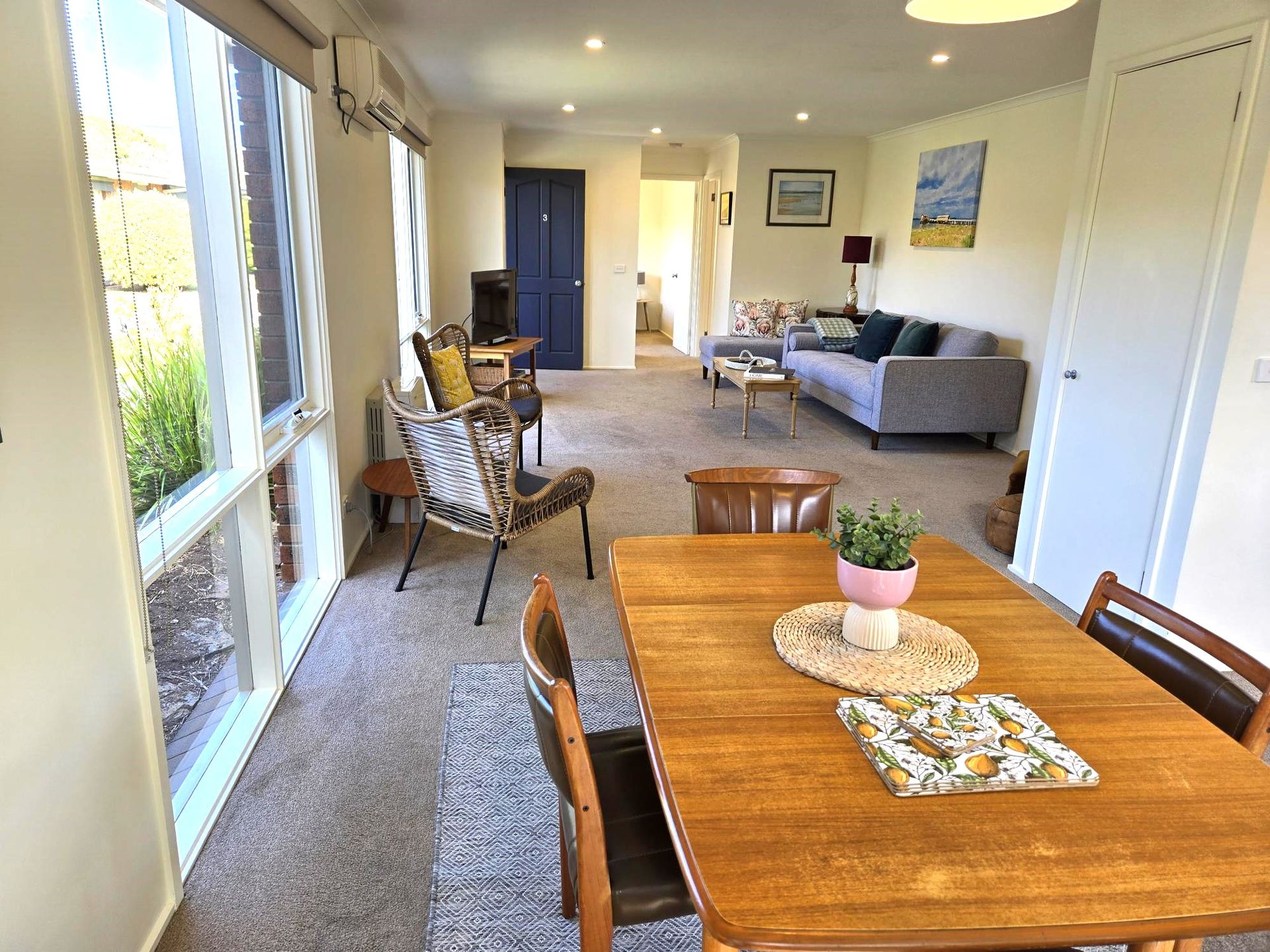 Open plan living provides a feeling of space. Large windows throughout the property provide plenty of light and sunshine. With a split-system and gas heating, this cosy unit is a welcome retreat all year around.