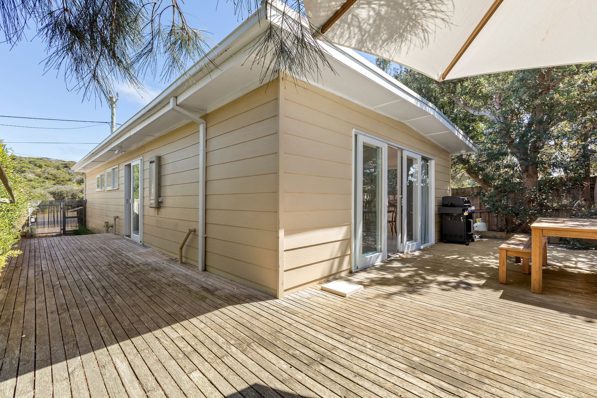 A fully equipped kitchen complete with Smeg appliances and adjacent dining area for the family, with additional outdoor dining make for great entertaining. Offering three bedrooms 2 with Queen beds and the other with a tri bunk (double below and single on top) can accommodate a total of 6 guests. There is also a separate space with desk provided for those that may need to check in with the office while away.