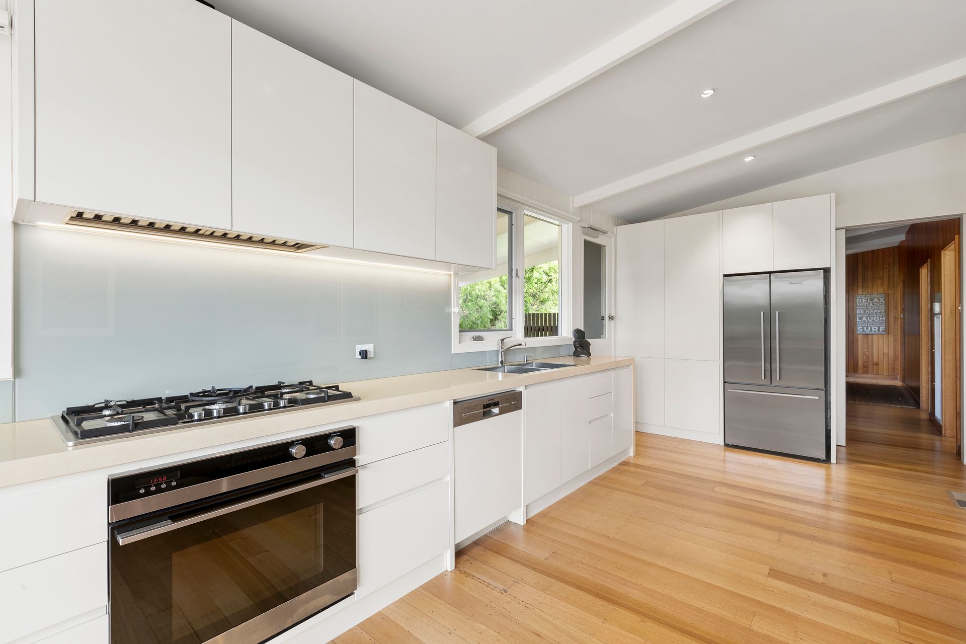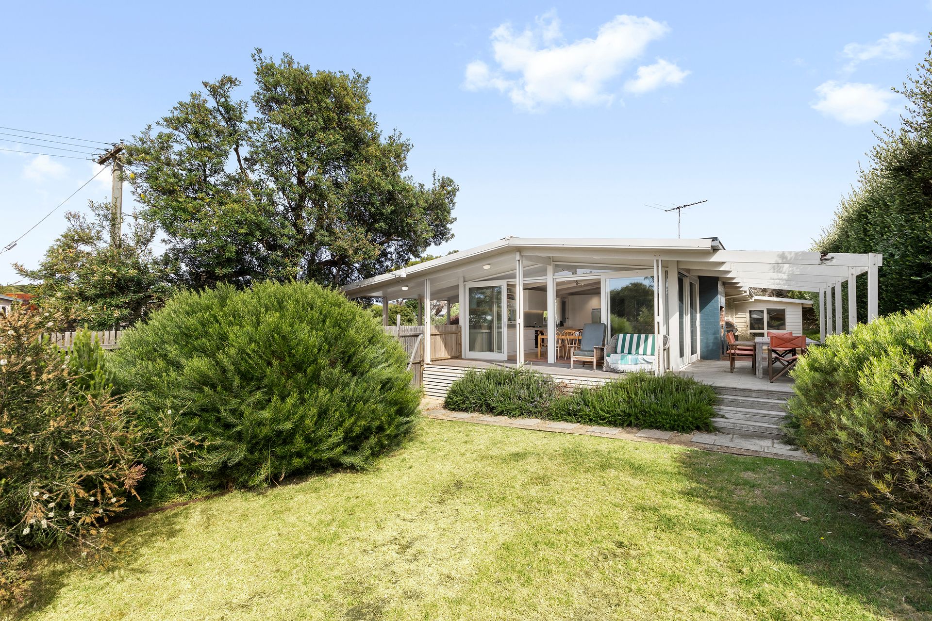 After a day in the sun, rinse off under the outdoor shower before enjoying the light filled open plan kitchen, living dining space that opens out onto a wrap around deck. Five bedrooms await. The 5th bedroom acts as a kids retreat with two bunk beds as well as a second living space to hang out. Relax in comfort year-round with ducted heating and cooling to keep you cool on warm summer nights and heating to keep you cosy when it gets a bit chilly.