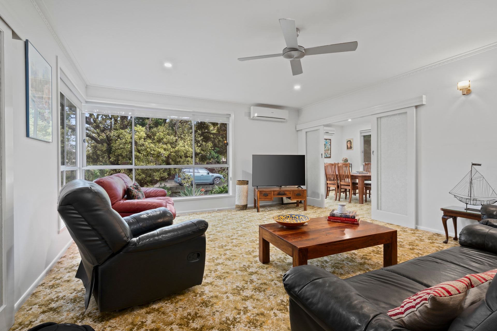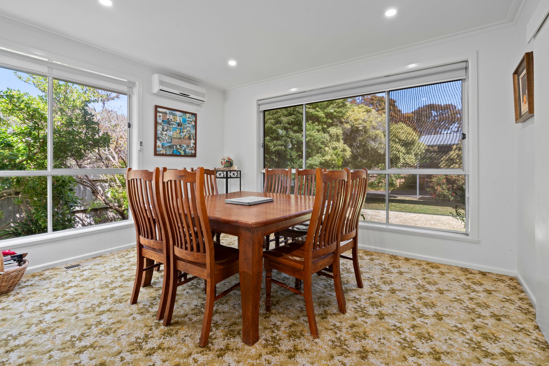 Unwind in the large living area with a split system for heating and cooling, ensuring your comfort at any time of the year. Enjoy home-cooked meals at the spacious dining table, with a fully equipped kitchen that boasts a dishwasher, microwave, oven, hot plates, and a coffee machine for the caffeine enthusiasts. Stock your favourite nibbles and beverages in the refrigerator for lazy day snacks and drinks.
