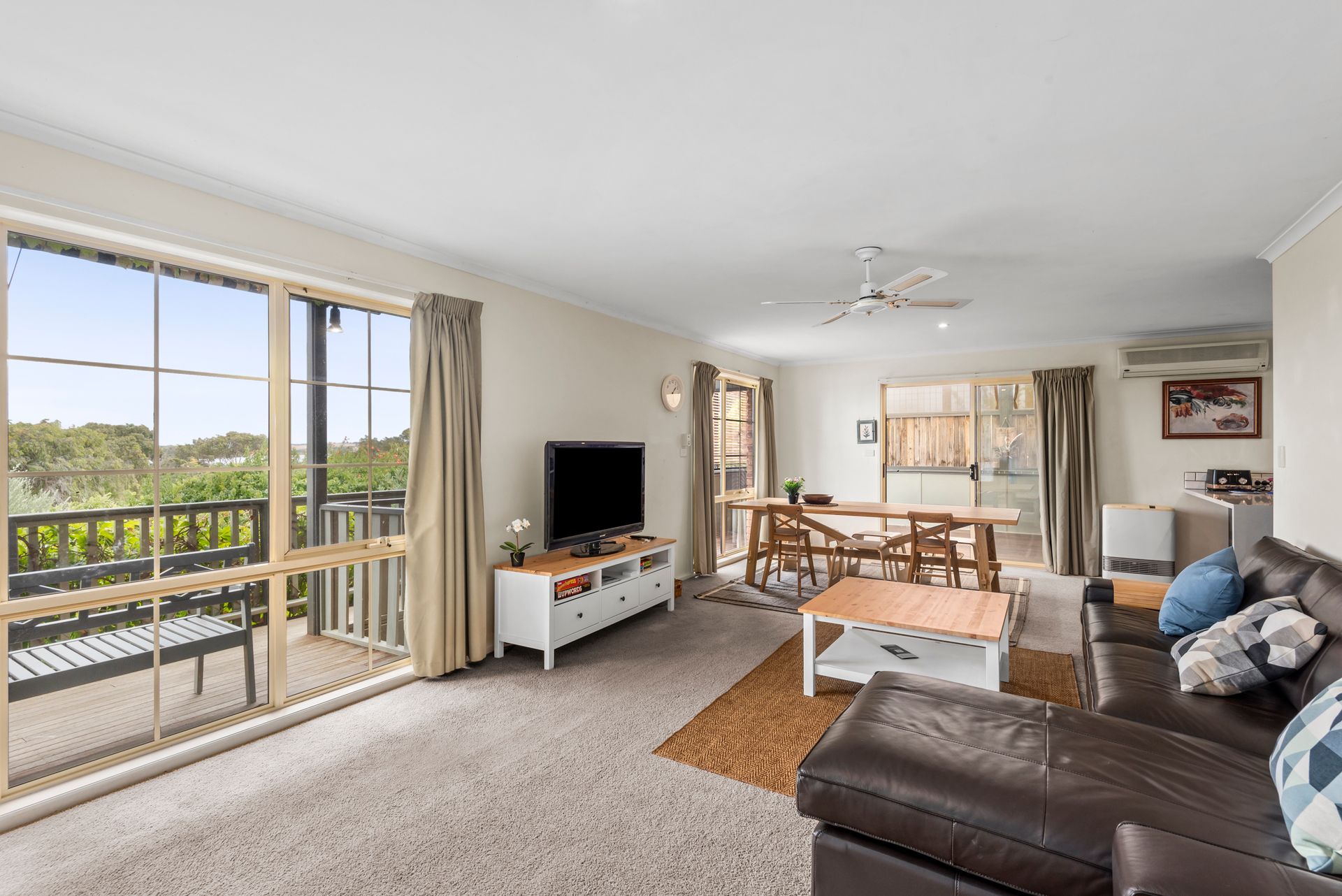 Gummy House by the Bay, located just through the Narrows, is perfectly situated to make the most of your Queenscliff getaway. Offering breathtaking views of Swan Bay and access to the beach just over the sand dunes, this outstanding three-bedroom holiday home is a true hidden gem. Privately nestled back from the street and adjacent to rolling parkland accessed via a secret garden gate in the lovingly curated garden, the property features an elevated balcony, two living areas, and a fully equipped modern kitchen. Features include: 3 bedrooms, 2 bathrooms, sleeps up to 6 guests, views over Swan Bay, Wifi, smart TV, split system heating and cooling, full kitchen with dishwasher and coffee machine, laundry facilities, and BBQ. Please note: Linen and towels are not provided but can be hired for an additional fee.