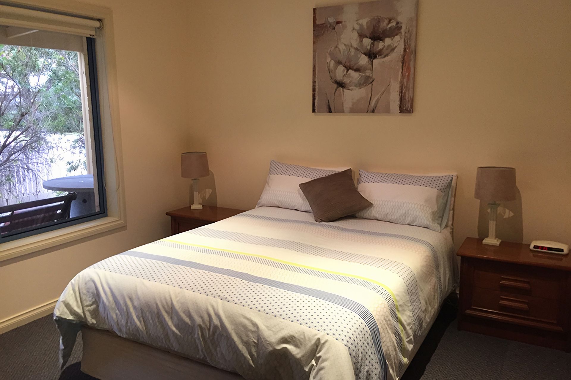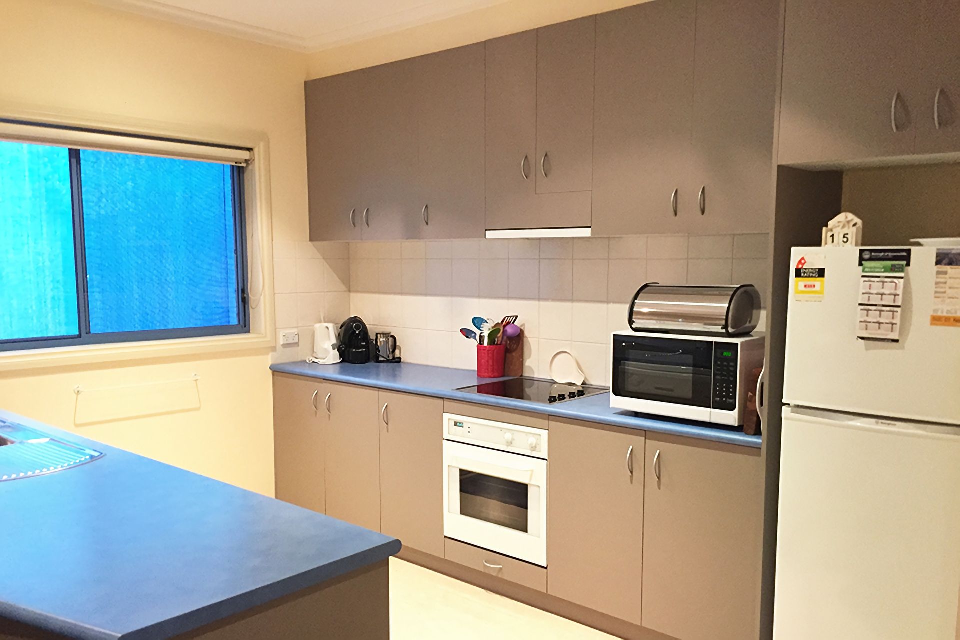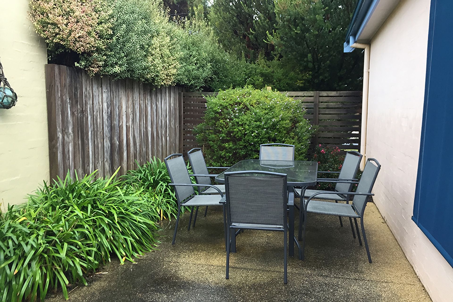 The open plan kitchen, living and dining area has all the necessities you need including a split system air conditioner for those hot Summer days. Glass sliding doors open onto a small courtyard where there is an outdoor setting and BBQ. This area is ideal for small dogs or older dogs who don't need a lot of space for exercise.
