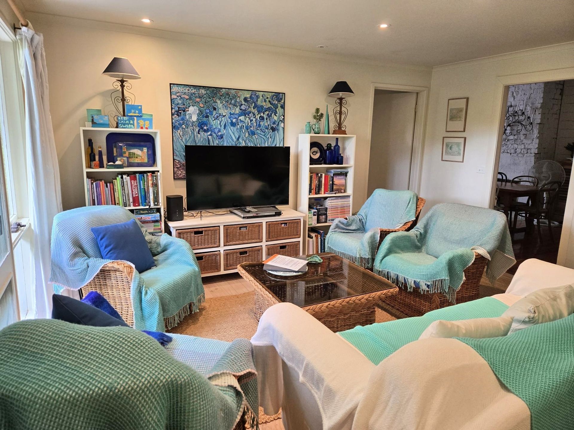 Kitchen includes all the essentials with microwave, dishwasher, gas appliances and everything required for a comfortable stay. Dining room consists of table and seating for 8 people, laundry includes a washer and dryer. There is a relaxed lounge with TV and separate sunroom. Outside is a courtyard with outdoor setting and gas BBQ for those Summer nights.