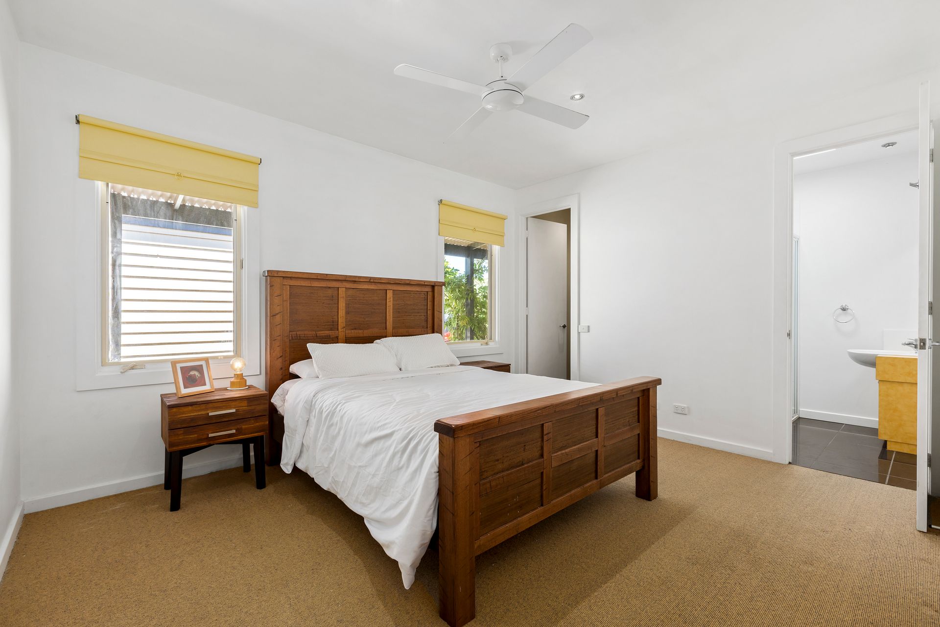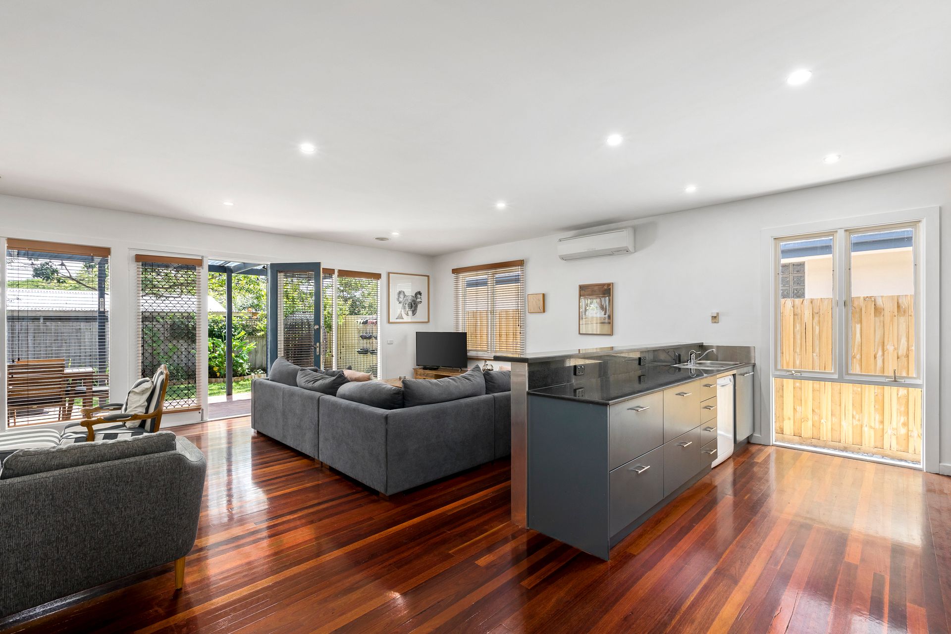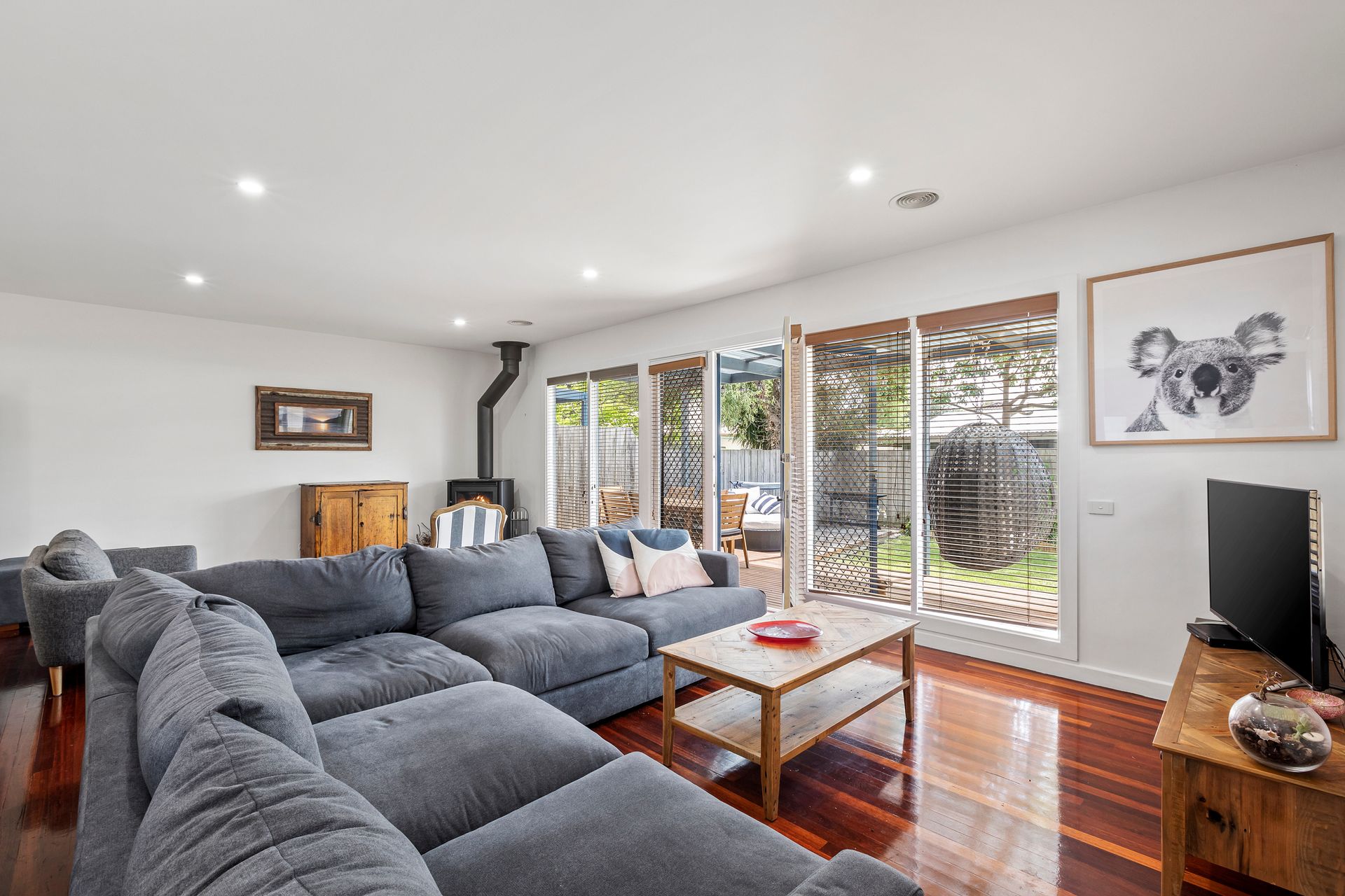 Lonnie Hideaway boasts three good sized bedrooms all with ceiling fans, accommodating up to 6 guests in style. The Master bedroom features a luxuriously king-size bed with ensuite. The additional two bedrooms both offer Queen beds, all have linen included, refreshing ceiling fans, and the soothing ambiance of ducted heating for a dreamy vacation slumber.