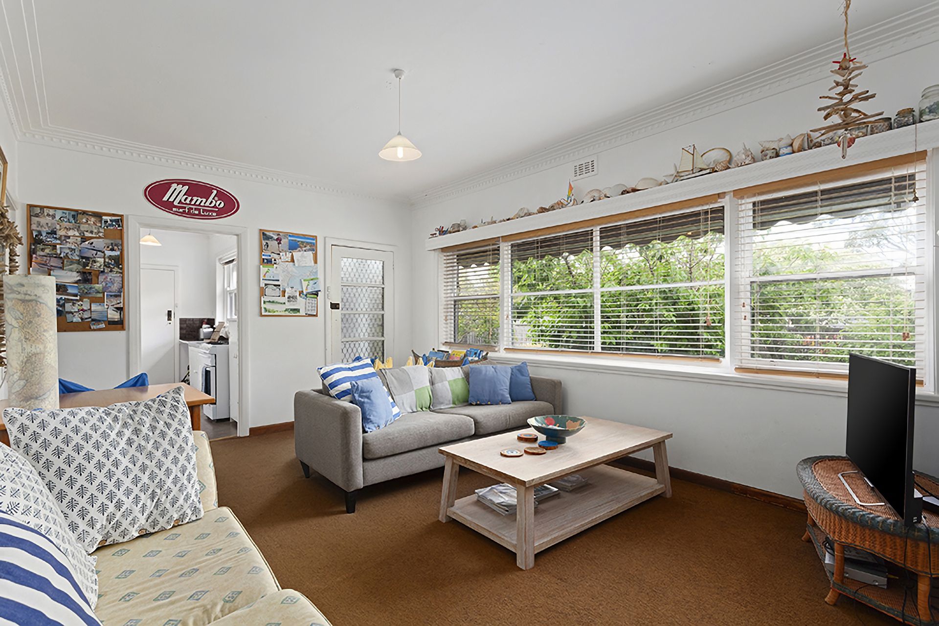 Located less than a 2-minute walk from the main shopping village with the front beach at the end of the street. This classic beach house is just right for an easy-going beach getaway. Features include: 4 bedrooms, 3 bathrooms, sleeps up to 12 guests, split system heating and cooling, gas wall heater, full kitchen with coffee machine, laundry facilities, BBQ, and pet friendly. Please note: Linen and towels are not provided but can be hired for an additional fee.