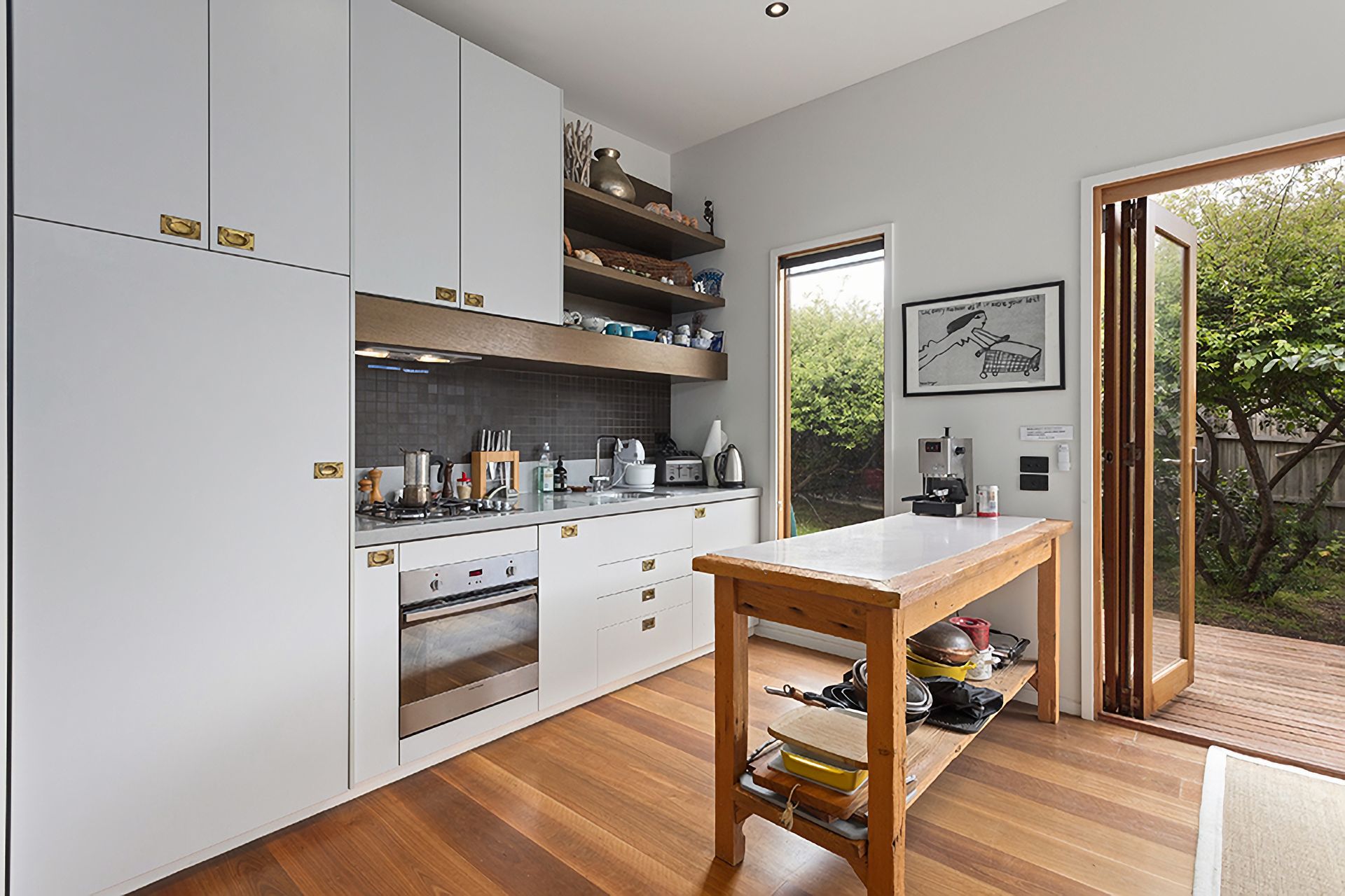 The middle section of the house, "The New" features a bright open-plan area with the main kitchen offering a large dining table for the family to gather around. This charming room opens directly onto a sunny deck where you can relax and enjoy a BBQ, while watching the family run around in a secure grassy space.