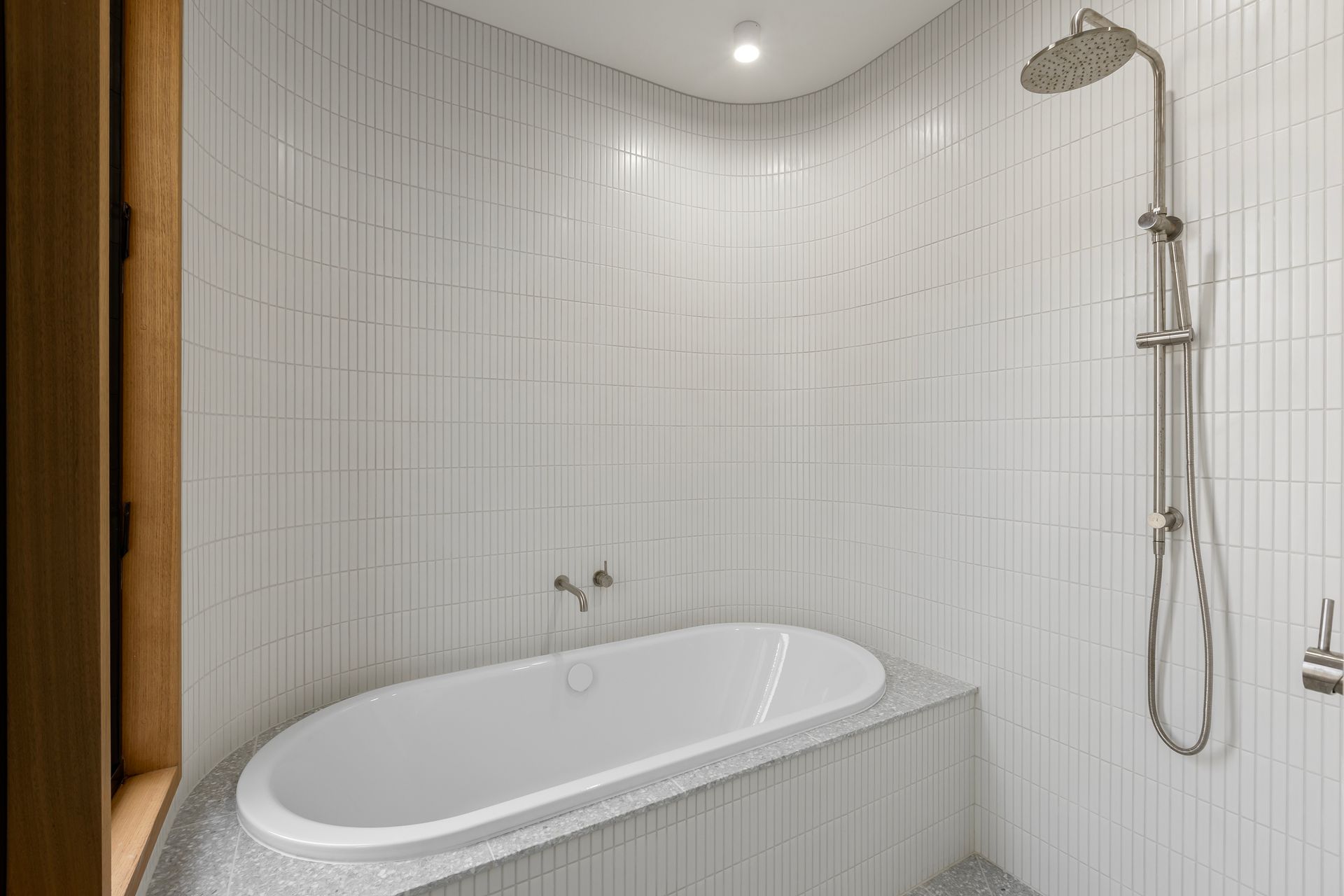 Swan's Reach boasts one luxurious bedroom perfect for a couple's getaway. Prepare to sleep in the ultimate comfort, cocooned in high-quality linens and plush towels. There is a ceiling fan as well as ducted air conditioning and heating to keep you in comfort year-round. Complete with a bathroom to dream about featuring floor-to-ceiling tiling and curved walls, a sleek and modern bath, and a rainfall shower. With the added luxury of sliding doors that open out to your private side deck for those gorgeous summer nights, your relaxation is assured.