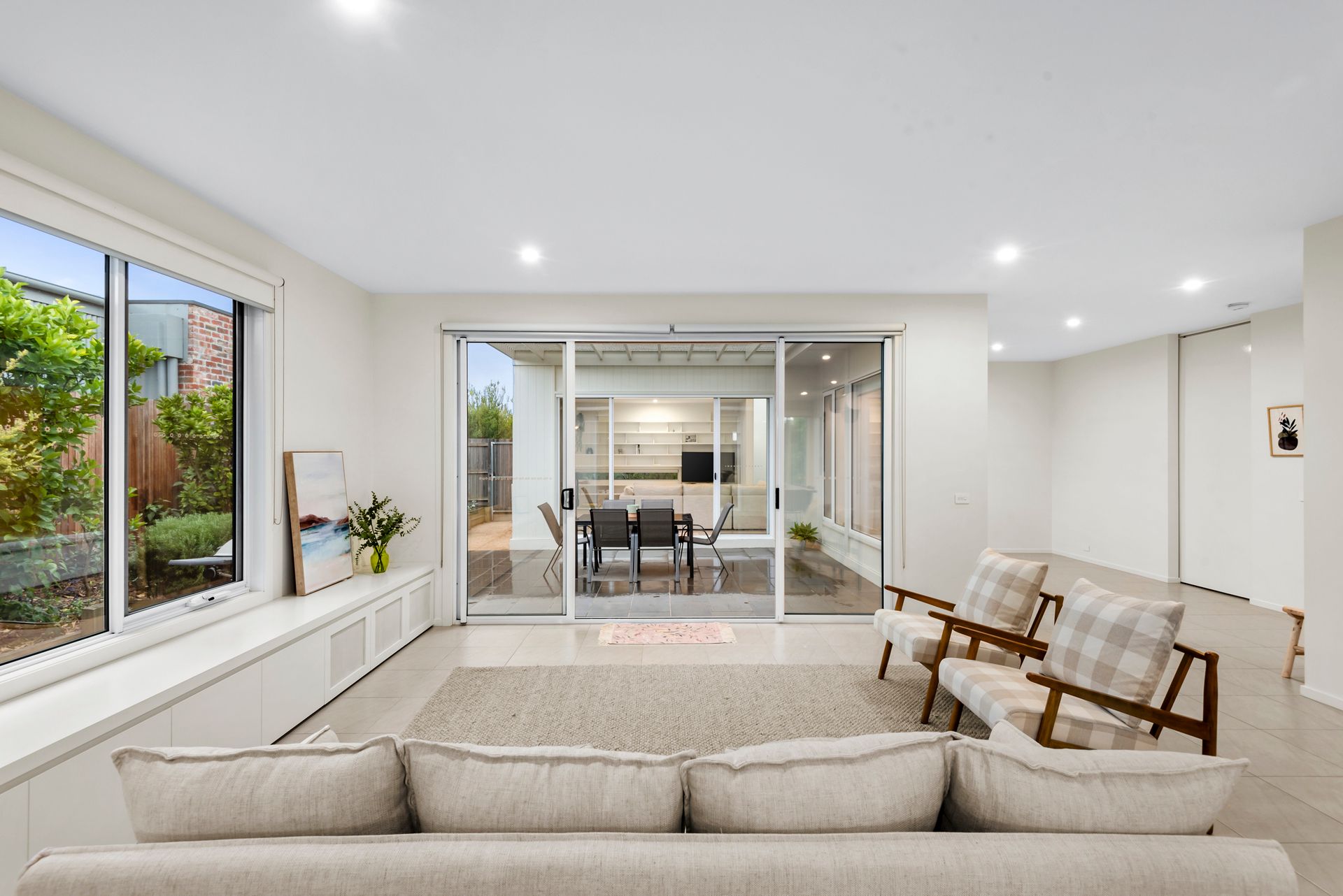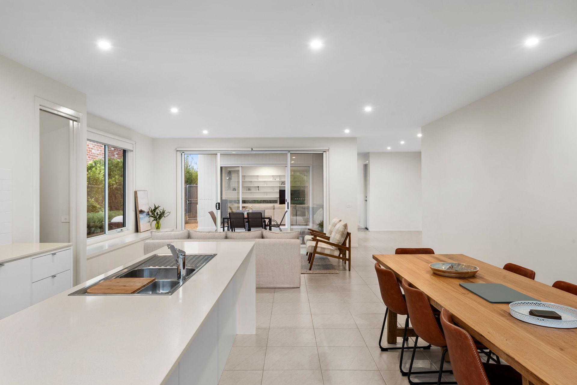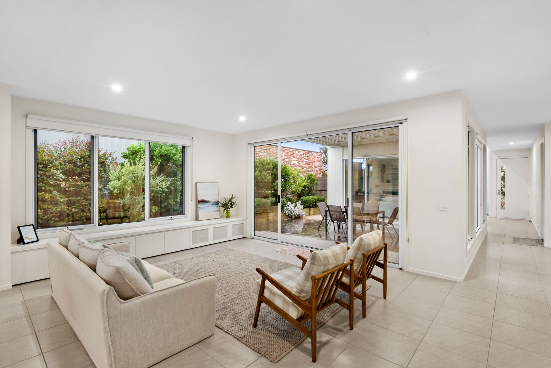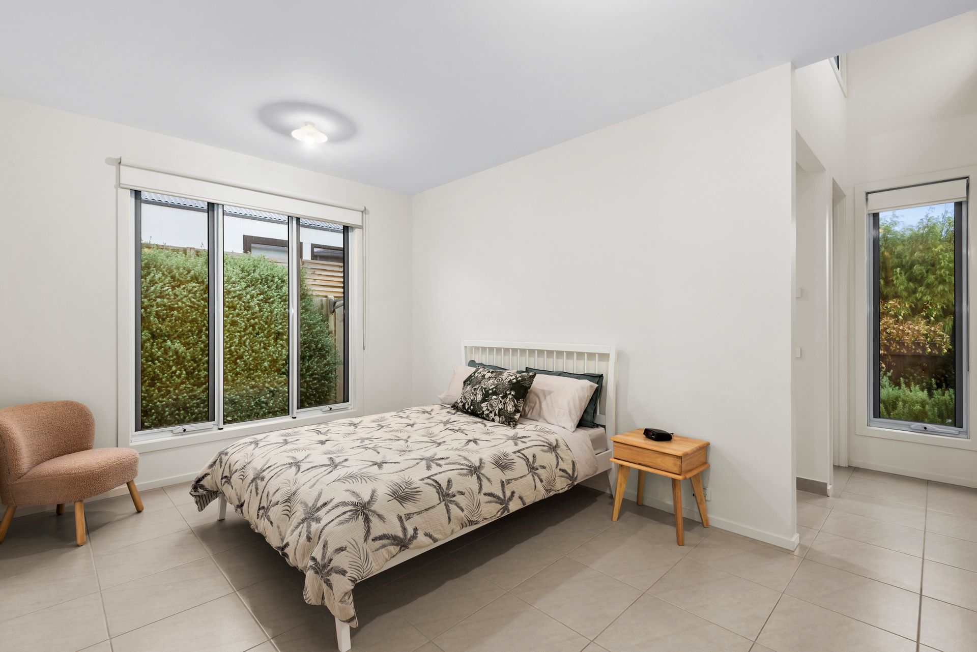 A modern delight with an expansive open layout soaked in natural light. Dual living zones flow seamlessly to a sunny courtyard, creating a magnificent indoor-outdoor space. Equipped with a remote awning and surrounded by beautifully manicured gardens, this holiday home thrives in the summer months.