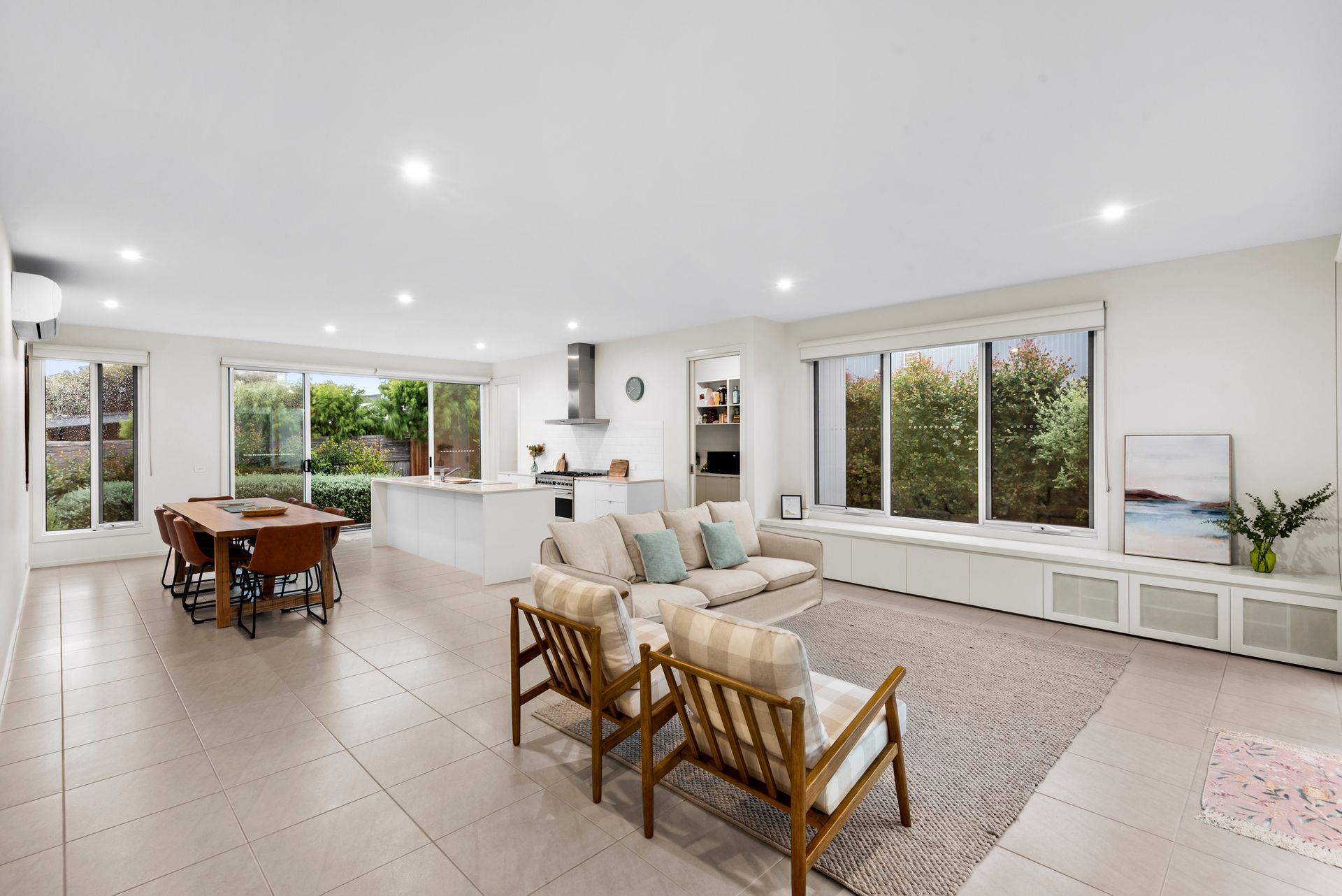 A vast and open kitchen is an entertainers delight, featuring a Caesarstone island bench, 900ml Smeg oven and cooktop, and coffee machine for your morning cuppa. Flowing effortlessly to the living, dining and courtyard beyond, this kitchen is built to host dinner parties with friends and family.