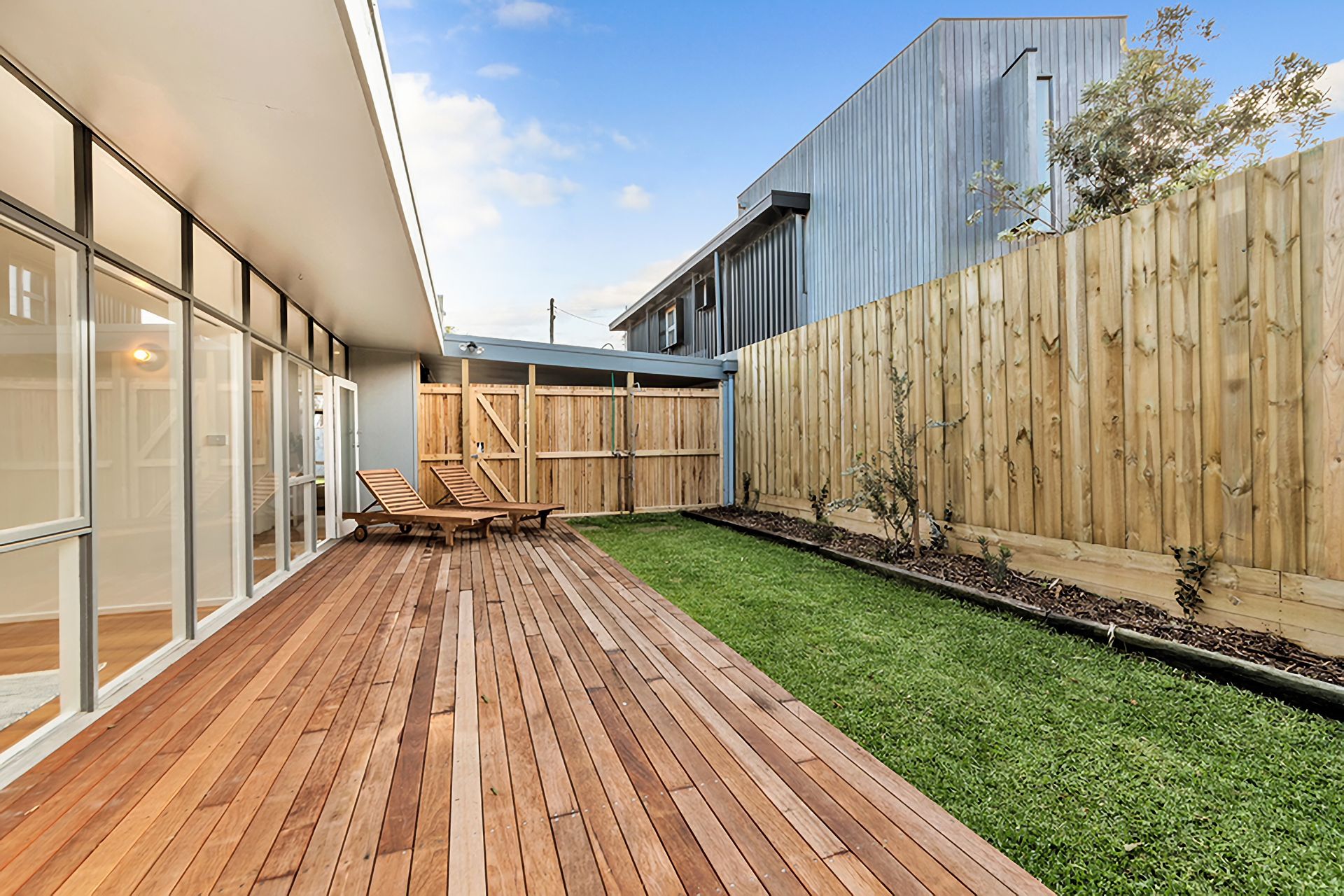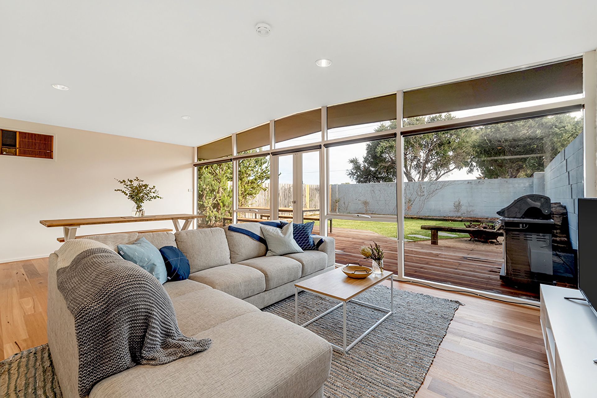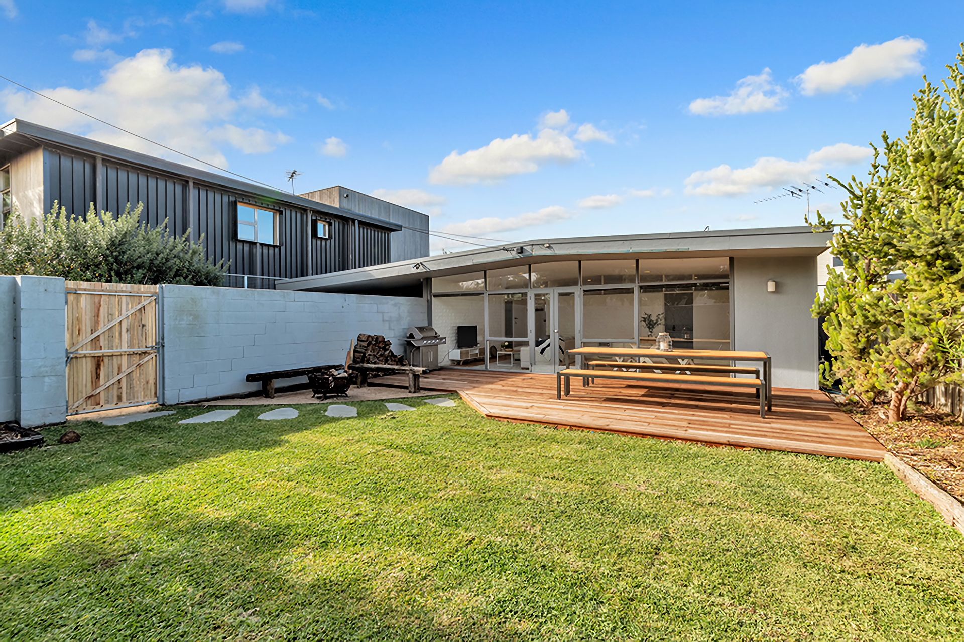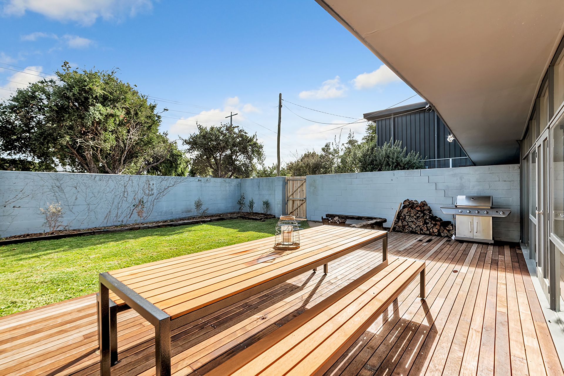 The front decked area has a large outdoor setting for 12 people with a BBQ and fire pit. Also, plenty of room for pets to play. The rear grassed area has a hot water outdoor rainfall shower which is ideal for when you return from the beach which is only a 7-minute walk away. The front beach and shops are an easy 10-minute stroll through Old Lonsdale.