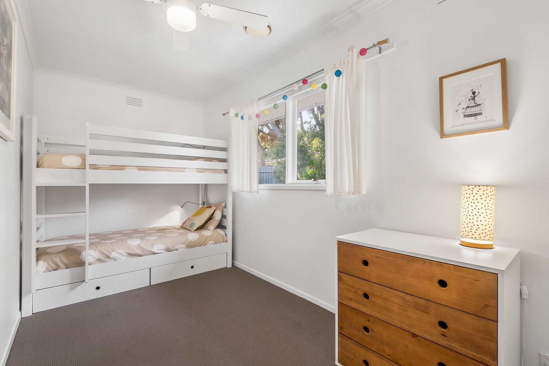 Ensuring year-round comfort, the property offers ducted heating and split system cooling systems, along with ceiling fans. For your convenience, the property is equipped with a clothes dryer, washing machine, ironing facilities, and high-speed WiFi ensuring you stay connected. The living room is complete with a smart TV for laid back, relaxed entertainment as well as an additional TV in the bunk room for the kids. Please note, you will need to bring your own linen.