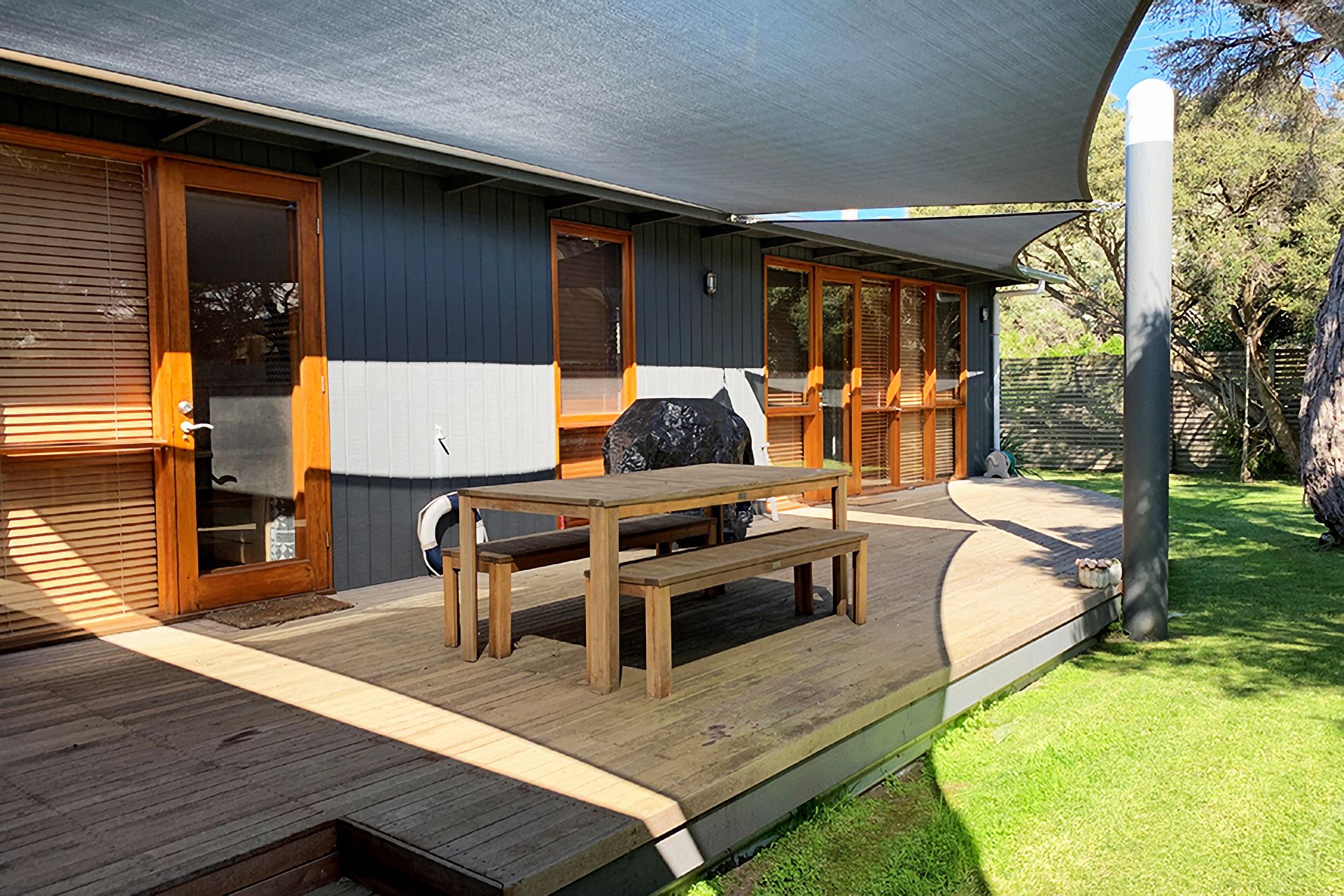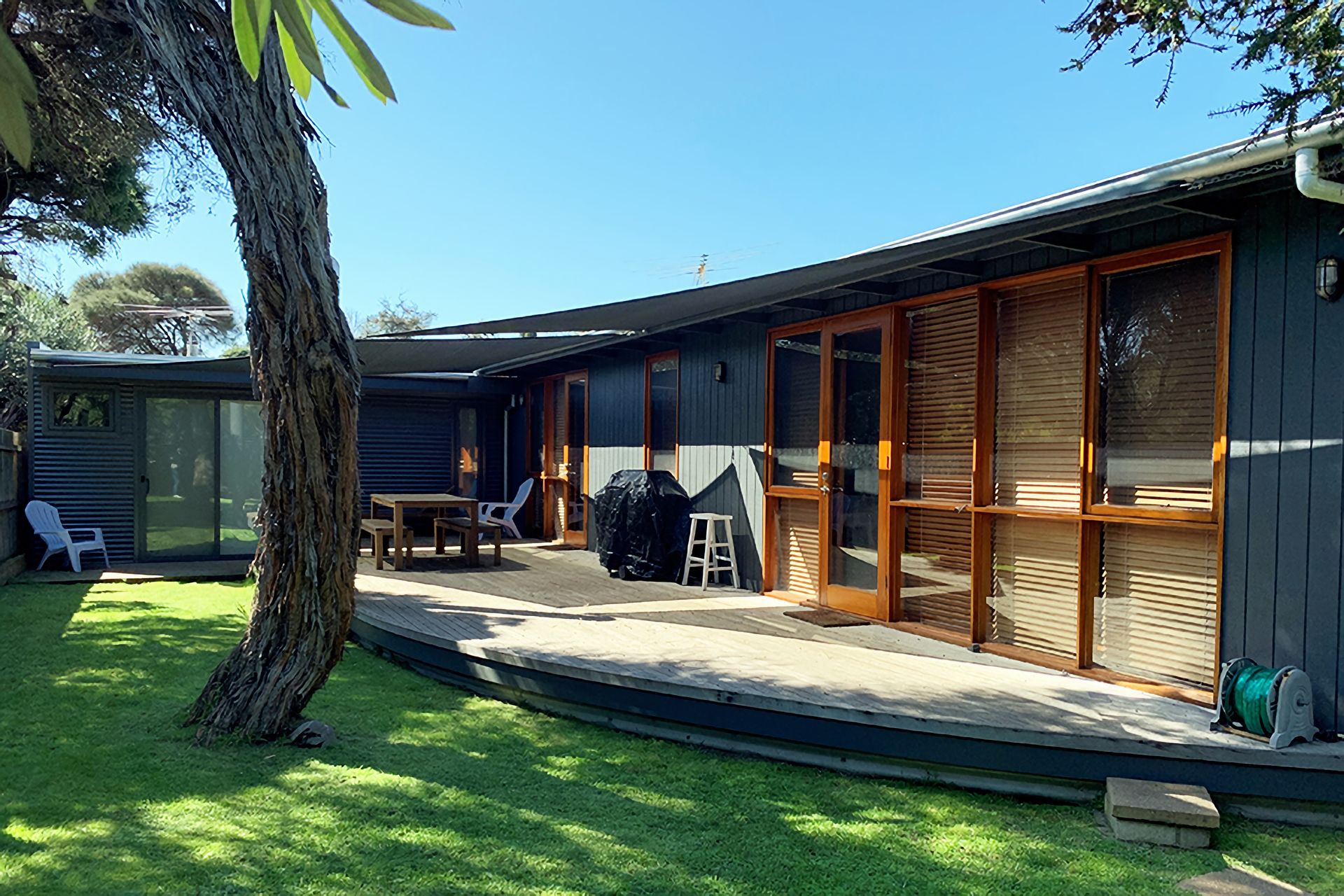 The open backyard provides BBQ, outdoor setting, outdoor shower and large deck. Off street parking (suitable for a small SUV) offers the convenience of leaving your car behind. This quiet getaway in a fantastic location offers everything you need for a perfect Point Lonsdale holiday.
