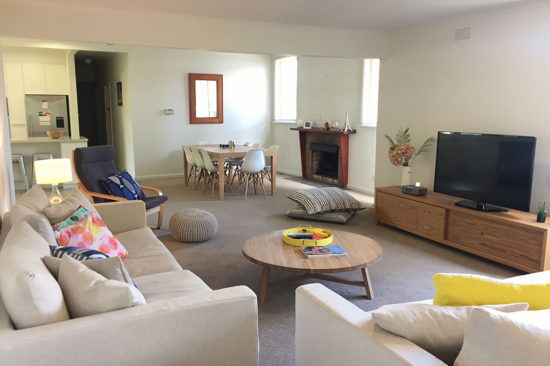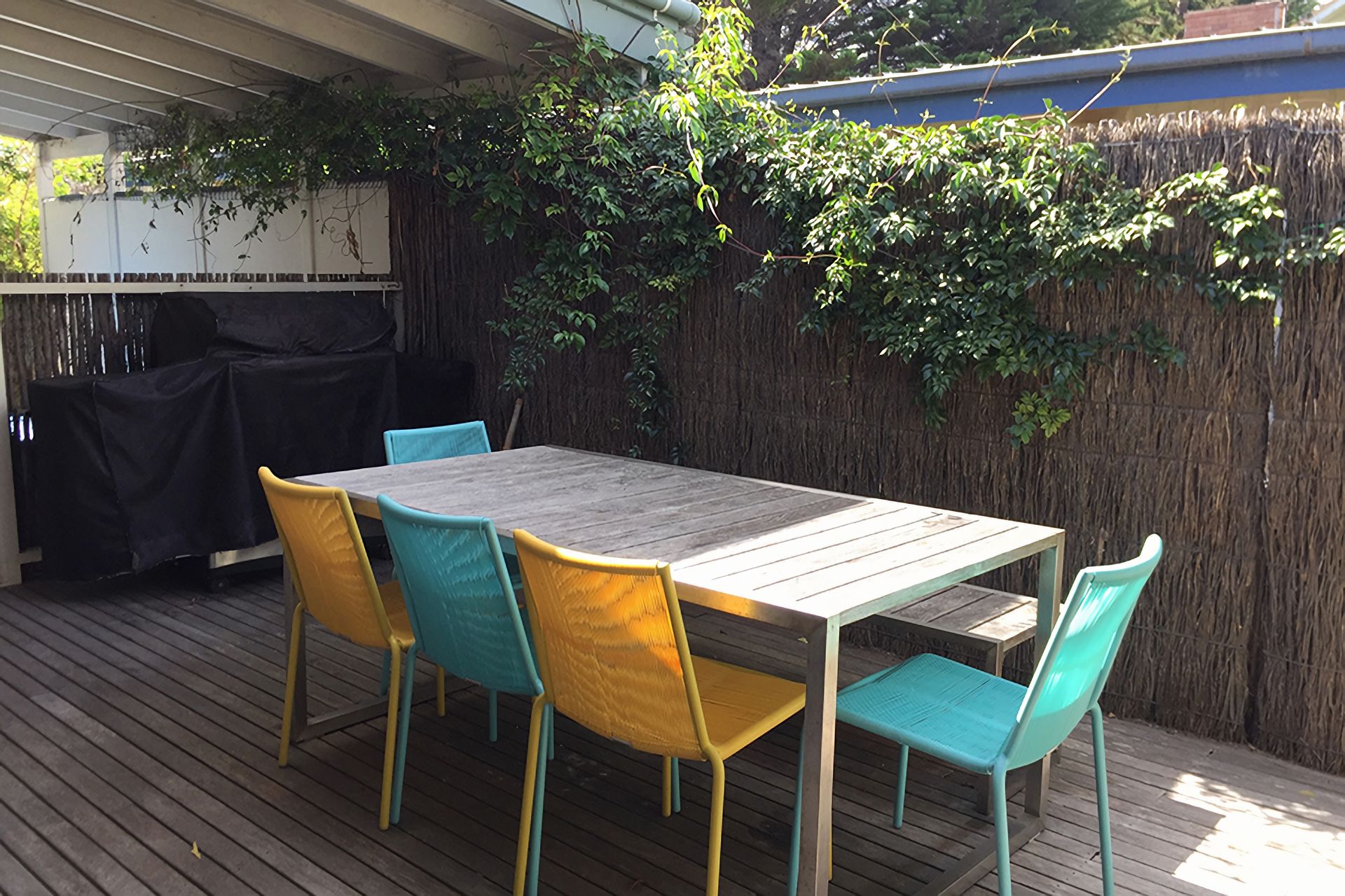 The decked outdoor entertaining area has an outdoor setting overlooking a large grassed area and a table tennis table to keep the kids entertained outside. An outstanding property, magnificently located within metres of the beach, surf club, tennis courts, Ganes reserve parkland and playground, offering all the hallmarks of a fun filled family beach house.