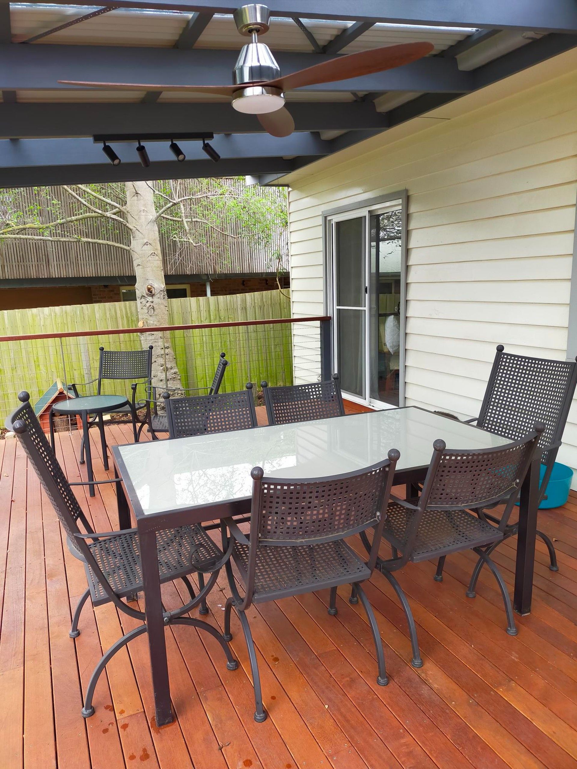 Outside, the rear deck features an outdoor setting for 6 with an umbrella. Below the deck is a large fully fenced attractive back yard with a portable fire pit and gas BBQ. Plenty of room for children and pets to play and for al fresco entertaining over the warmer months.